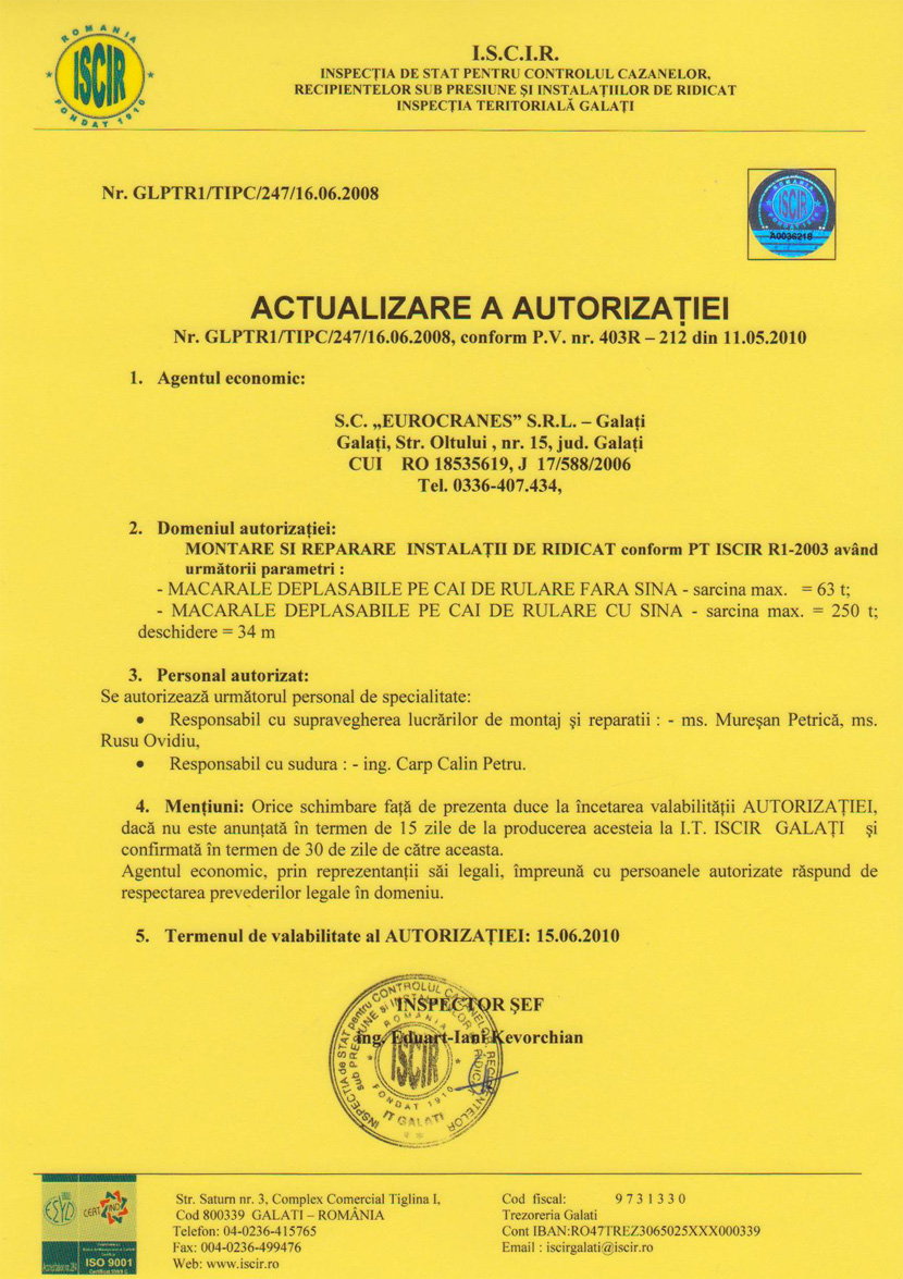 instalatii de ridicat - reparatii macarale, nacele, poduri rulante, vinciuri hidraulice si mecanice, dispozitive de ridicat, trifoare, palane electrice si manuale, transpalete, trolii |